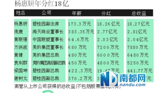 在上市公司高管眼中,收入好不好,主要靠股权。为激励高管,相当多的高管拥有一定股权。如美的集团董事长方洪波,拥有3600万股股票,按照美的2013年分红方案,每10股派息20元,那么,仅股息分红一项,方洪波可得7200万元。股息分红超过个人薪酬的10倍。正因为股权变现以及股息分红的巨大收益,从董事会领取的薪酬在高管眼中无足轻重。正因如此,2012年346家上市公司的董事长是零年薪。