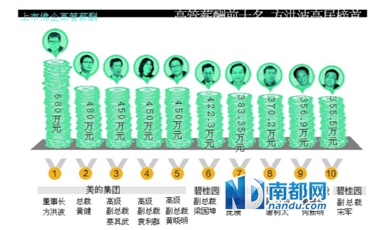 又到一年上市公司年报发布时间。在公众眼中,上市公司都是高富帅的代名词。过去一年,佛山上市公司高管们的吸金能力究竟如何,他们一年薪酬有多少,吸引着人们的目光。为此,南都记者对佛山A股和H股共35家上市公司的高管薪酬进行统计,结果可能在你的意料之中,美的集团、碧桂园两家超级企业成为大赢家。不过,对于高管来说,薪酬神马的可能只是浮云,股权才具有真正的诱惑力。下面,就让南都记者带您看看去年上市佛企的财富盛宴。