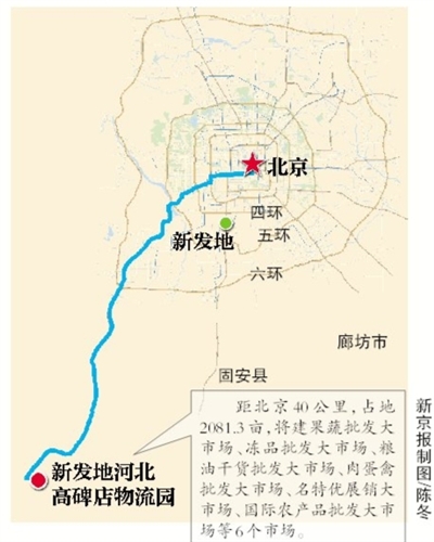 据了解,今后北京新发地物流集散功能将大部分移至高碑店。