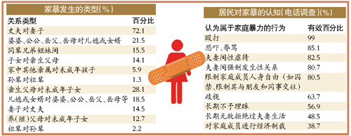 根据对1610个社区基层组织的问卷调查结果,家庭暴力最主要发生于丈夫对妻子施暴,占72.1%。