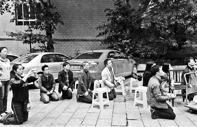 校长下跪劝老师回校上课,众老师只好反跪校长
