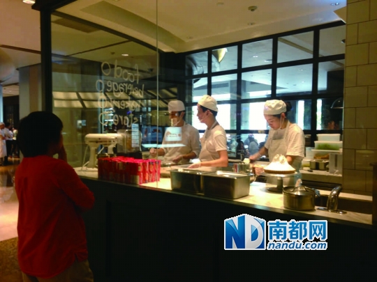 由于这家餐厅是以轻食为主,因此记者见到几位厨师在玻璃房里面有的忙打鸡蛋、有的在倒奶油、有的为做蛋糕准备模子……有围观的顾客对记者表示,这样新颖的透明厨房她还是第一次在深圳见到,因为之前听说有的轻食店做面包或者蛋糕时所使用的实际材料并不如它们对外宣传的那么好,因此总会对外面售卖的食品质量持半信半疑的态度。不过这次商家很有心思,为了平息消费者心中的疑虑,把使用的油、糖、奶油、巧克力、面粉、水果等原材料都放在透明厨房内,让更多的顾客可以清晰看到整个食品的制作流程,感觉很新鲜也很放心。