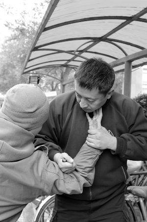 他建议,平日里笔一定要放在便于拿到的地方。攻击时,用握匕首的姿势紧紧握住笔。“很多商务人士都喜欢随身携带签字笔和钢笔之类的文具来记录和签署一些文件,如果有歹徒掐住了你的脖子,那么你可以一手握住对方掐住自己脖子的手,另一只手紧握钢笔狠插对方的小臂,同时用力下压对方手臂,使其造成很大的伤害,趁着对方疼痛难忍之际,将歹徒制服。”