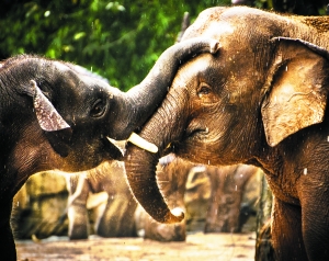 《问候》 张穗春 摄 评语:两头大象不只有肢体的接触,我们似乎还感受到了眼神的交流和爱意。作者捕捉温馨瞬间的同时,不忘利用大象鼻子的线条美,用诗化的摄影语言,去传递动物间的爱,激发读者对动物的喜爱之情。