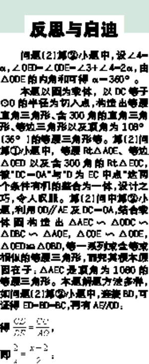 其解题难点在于画出草图与利用“D为EC中点”及圆的特性构造等腰三角形,并能联想到“直角三角形斜边上的中线等于斜边的一半”,并构造出该定理的基本结构图进而找到解题的突破口。这里连接OE是图形处理的关键。