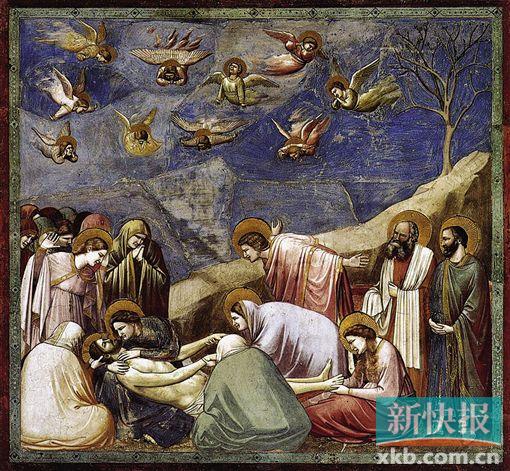 时至今日,意大利人依然相信是两个人开拓了他们的时代,一是诗人但丁,另一个就是画家乔托(乔托·迪·邦多纳)。乔托被誉为是划破黑暗中世纪艺术星空的“第一道曙光”,他的壁画打破了中世纪沿袭已久的死板程式,大胆探索与真实生活接近的宗教人物形象,是意大利绘画最早的革新者。《哀悼基督》便是他最负盛名的作品。