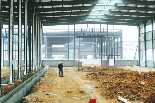 简短介绍了项目情况后,曾永红带着记者走进正在紧张施工的项目现场。一路走去,一辆辆装载车正驶进道路尽头的厂房施工现场,最靠近正门口的5间厂房已经施工完毕,“2012年下半年开始进场建设,目前一期有5间厂房已经验收竣工,14号厂房正在进行设备安装。”