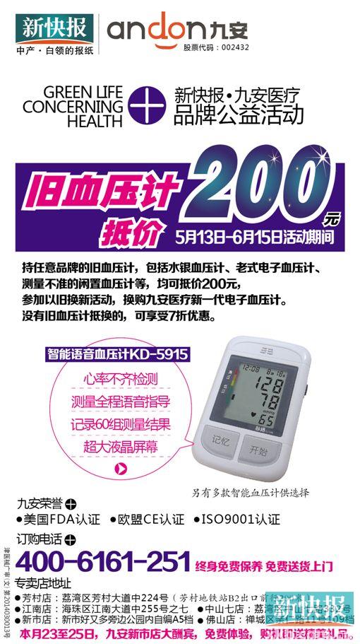 同时提醒大家,家里的血压计不分款式、新旧、好坏,到活动的指定换购点,均可现场抵价200元,换购新一代智能血压计。