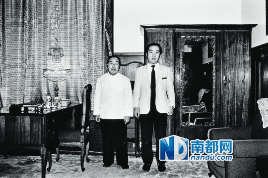 1991年,在天津利顺德饭店的总统套房,父子两代服务员老张和小张。