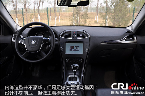 坐进车内,内饰造型并不豪华,但是足够突显运动基因;设计不够前卫,但做工看得出功夫。这种线条起伏的中控台设计、看似诡异又特立独行的变速箱档杆、“北”字LOGO突显和握感不错的方向盘,每一项都能带给你运动的感觉,当然,绅宝就应该是这样的。