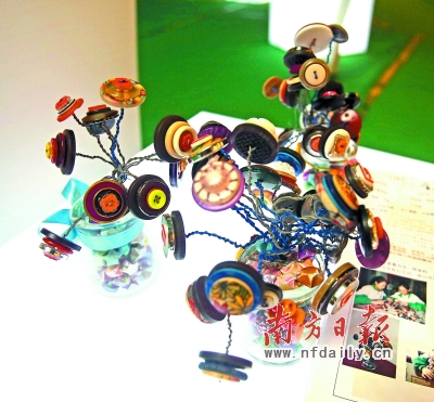 在展览中,我们看到了不少熟悉的玩具,比如以彩线粽子为装饰的小吊灯。作为80后,这种粽子我们小时候都曾经亲手做过,现在的小孩还会做吗?据该作品的指导老师介绍,粽子是小朋友的妈妈帮忙做的,但是小吊灯部分却是由孩子来完成。这样,妈妈童年时代的玩具就被小朋友改造成了一个兼具装饰性和实用性的作品,对两代人来说都有特别的意义。