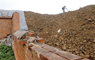 24日,平谷下着小雨,大院内已经停止了任何工程。塑料薄膜仍在土堆上盖着,但仅仅盖住了一小部分,大部分土仍然裸露着,大院中间的一堆土没有任何覆盖。