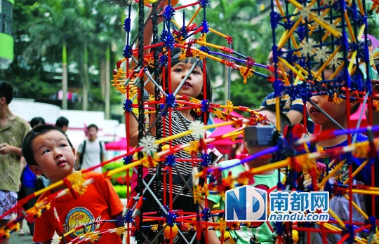 小朋友在玩“创意结构搭建”。昨日,在海珠区开幕的小海豚科技节,D IY创意工作坊吸引了大批学生和家长参加,在现场即可亲手制作“导电画笔”、“闪光电路”等科技创作。作为海珠区科技活动周的亮点节目之一,小海豚科技节暨创客梦想乐园主题科普活动在海珠区少年宫举办,除了创意工作坊,还有创意市集、主题演讲等环节。南都记者冯宙锋 罗苑尹 通讯员 罗雪莲 摄影报道