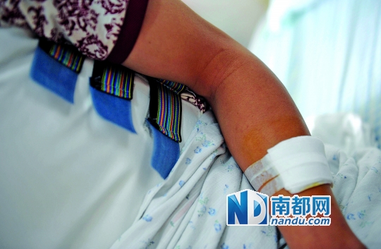 阿福左腹部和手臂受伤,在医院接受治疗。南都记者 叶志文 摄