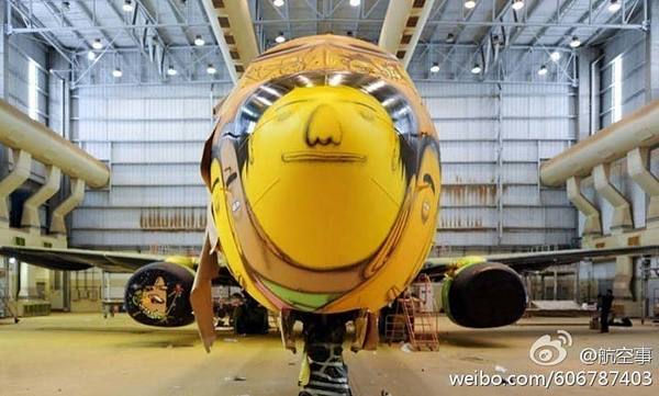 近日,在巴西贝洛里奥藏特,巴西世界杯期间巴西国家队专机曝光。机型为波音737,涂装相当“鲜艳”—画满了卡通的球迷头像,由艺术家Os Gêmeos耗时一周完成,用掉了1200罐涂料。主色调为巴西国旗颜黄,老旧的波音737一旦被喷上彩绘,便溢出桑巴热情。机身上的卡通球迷简直萌透了,可惜它只供东道主巴西队独家使用。