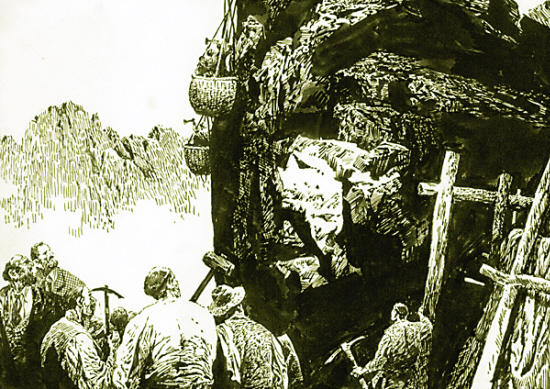 在大雪弥漫的内华达山脉修铁路的华工