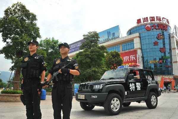 此次端州警方新型敞篷武装特警车具备四驱系统,充分体现战时快速、灵活的特点,大大提升端州特警处突和打击犯罪的战斗力。每车安排4名警力,携带微型冲锋枪、手枪等武器、单警装备和对讲机,采取“点、线、面”相结合的方式,沿城区主干道和人员密集场所实施全天候、不间断地武装巡逻。同时,端州特警还分成多个徒步巡逻小组在城区人流量大、商铺密集等繁华区域进行徒步巡逻。![]()
