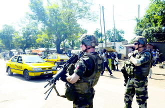 2014年4月10日,联合国安理会一致通过决议,向中非共和国部署联合国维和部队。图为中非首都班基的维和人员。CFP
