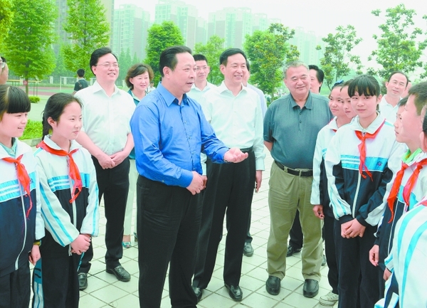 本报讯(成都日报记者 张魁勇 摄影 王熙维)“六一”国际儿童节临近。昨日,在郫县调研的省委常委、市委书记黄新初专程来到中信洪石学校,看望慰问孩子们,并代表市委、市政府向全市广大少年儿童致以节日的美好祝福,勉励大家做德智体美劳全面发展的新时代少年,做实现中华民族伟大复兴中国梦的接班人。