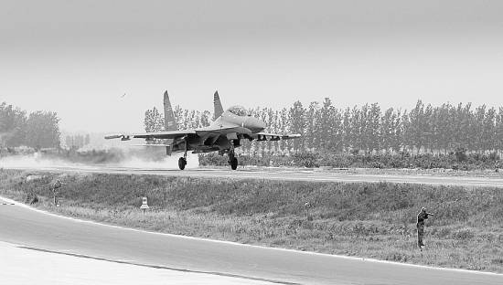 成功了!观摩台上,济南军区空军副司令员周利兴奋不已:“这是全军首次组织保障三代机在高速公路飞机跑道上试飞。”