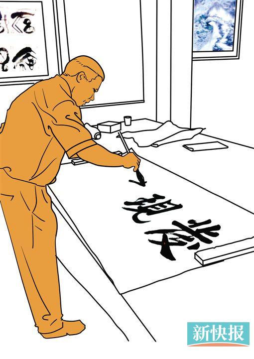 ●黄强除了扮演邓小平,平时还会学习书法,去年他还拜书国内书画家王海军先生为师,他觉得这是一种修身养性之举。图为黄强为本报栏目留下了“发现广州,惟善为美”的墨宝。