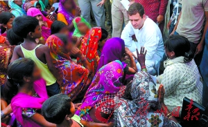 新华社电 印度国大党副主席拉胡尔·甘地和多名高官5月31日探望受害者家庭(右图)。受害者亲属告诉拉胡尔·甘地,他们已经对北方邦当局失去信任,要求印度中央调查局调查案件。
