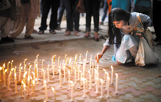 5月31日,印度新德里民众集会示威,并点起蜡烛,抗议两名未成年少女遭强暴并杀害的事件