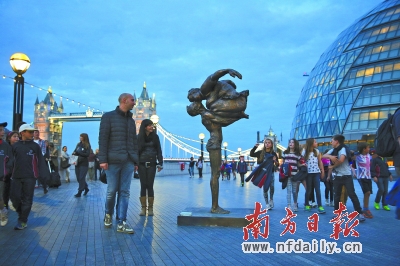 英国观众参观“肥女”雕塑。 曾雨林 摄