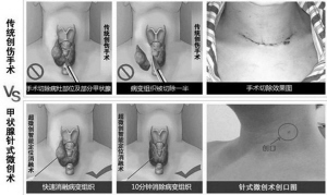 孙教授告诉记者,类似的情况临床中特别常见,传统甲状腺囊肿或结节手术往往需要摘除一部分甲状腺组织,手术创口普遍达10厘米,术后恢复缓慢,且因甲状腺组织的切除,术后患者极易患上甲减。以致很多患者手术面前止步不前。