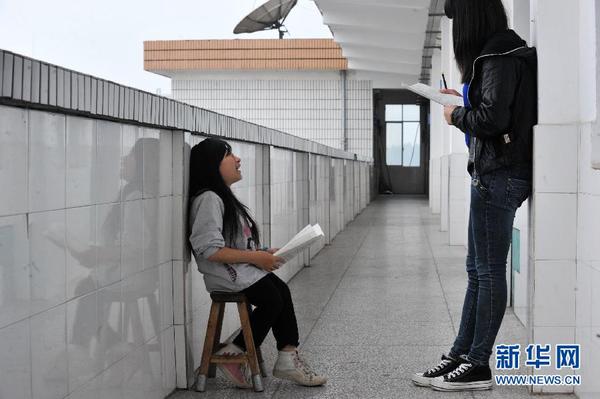 新华社照片,长沙,2014年6月5日 “玻璃女孩”备战高考 刘儒珍在教室走廊与同学讨论高考模拟试题(6月4日摄)。今年19岁的刘儒珍是湖南宁乡县七中一名学习优秀的高三学生,因为患有先天性脆骨病,极易骨折,大家都称她“玻璃女孩”。19年里,刘儒珍骨折过60多次,造成腿部肌肉过早萎缩,骨骼发育畸形,身高至今不到1米。虽然身患罕见疾病、出身贫寒之家,刘儒珍始终没有放弃求学之路。从小学开始,她每天在同学的帮助下用板凳代步上学下学,一直坚持到今年参加高考。目前,刘儒珍正努力备战高考,面对未来她自信而乐观,她希望考入医学类大学,学到本领以后帮助其他人。新华社记者 龙弘涛 摄