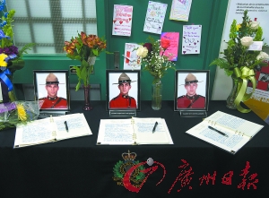 加拿大市民纪念三名被枪杀的骑警。