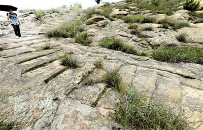 在光黄古道旁,孤零零的矗立着一个石头,因其像俯卧扬首的牛,被称卧牛石。不远处,麻城市政府在2012年竖起了一块文物保护碑,上书“卧牛石驿道遗址”。