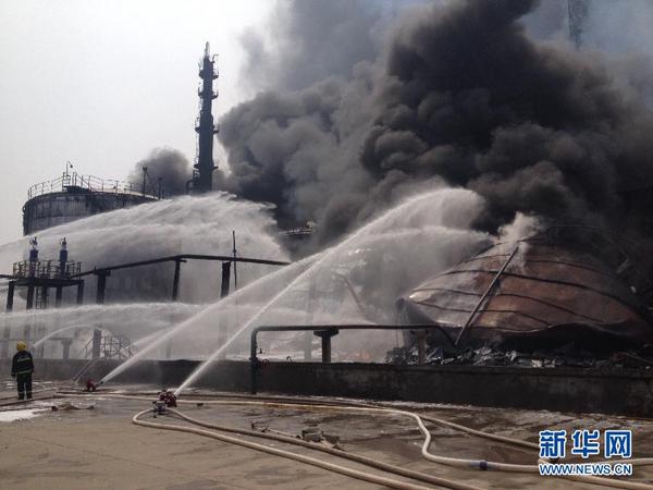 6月9日,消防官兵在南京市六合区扬子公司炼油厂爆炸现场灭火(手机拍摄)。当日12时44分,南京市六合区扬子公司炼油厂硫回收装置爆炸起火。南京消防已调集大批消防警力前往救火。 新华社发(王伟 摄)