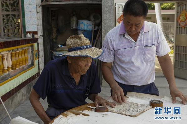 6月4日,在海南省东部的琼海小镇潭门,87岁的渔民卢业发(左)和儿子卢家炳在对照着现代海图查看《更路簿》。在海南省琼海市著名的南海渔港潭门镇,街道两旁都是各种海鲜店和工艺品店,唐冠螺、凤尾螺、万宝螺、龙虾、海参、鲍鱼、砗磲……各种海洋珍品令人目不暇接。小镇的繁荣来自这里渔民世代耕耘的南海,也离不开一本流传百余年、为昔日海上丝绸之路指点迷津的“航海圣经”《更路簿》。新华社记者 张玉薇 摄