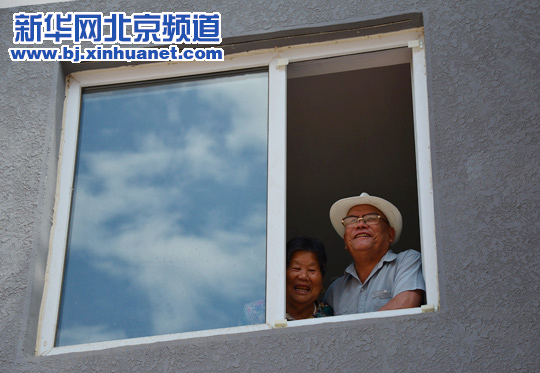6月10日,在京煤集团工矿棚改杨坨安置房,入住居民高兴地眺望远方。新华网北京频道发 李骁姗摄