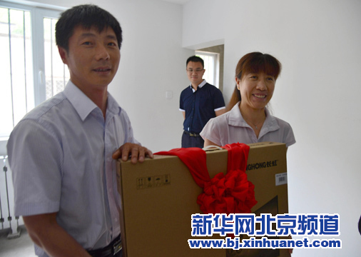6月10日,杨坨安置房入住居民喜得京煤集团发放的奖品。新华网北京频道发 李骁姗摄