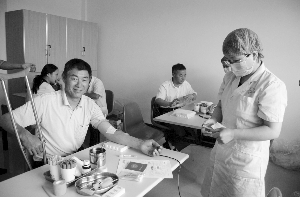 因为对残疾人献血有特别的规定,即:无重度残疾和无功能性障碍,因此为了他们的身体健康,最终工作人员劝他们放弃了献血。肖拥军也提醒,血站对残疾人献血志愿者体检要求更高于常人,他们中多数由于肢体残缺,运动量过小,甚至有人常年卧病在床,血液循环不畅,因此血液的指标可能达不到。所以残疾人献血前一定要多咨询相关医护人员,奉献也要以身体健康为前提。![]()