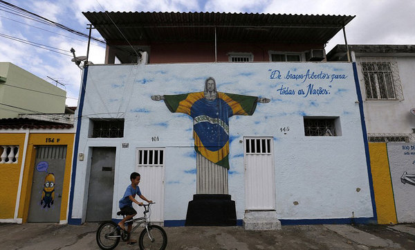巴西街头涂鸦狂热与愤怒并存 巴西前锋变身绿巨人(高清组图)
