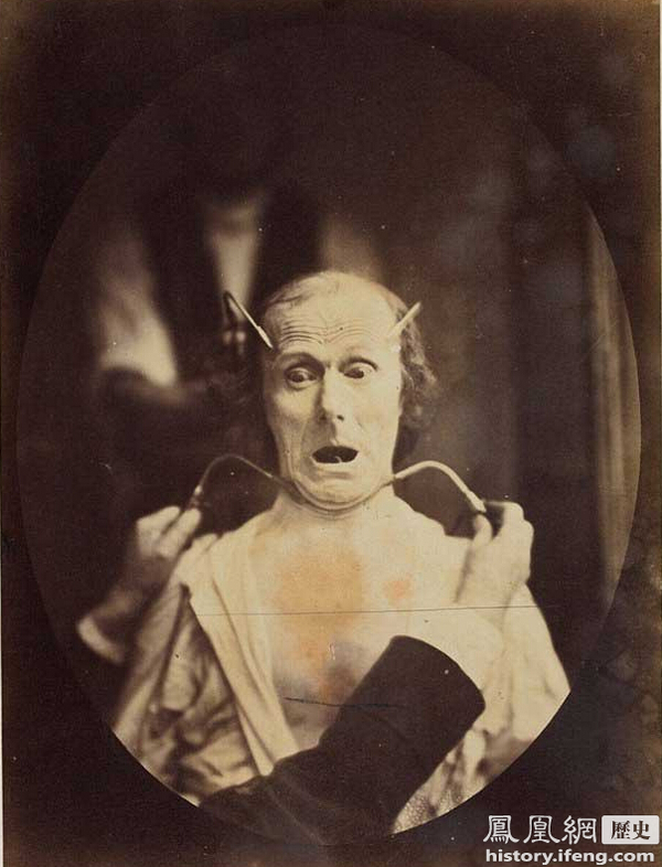 这些令达尔文着迷的照片由法国神经病专门医师Duchenne de Boulogne拍摄,他认为面部表情是心灵的体育场。