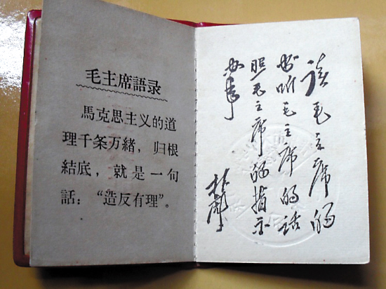 当年的红卫兵证,里面印有毛主席、林彪语录