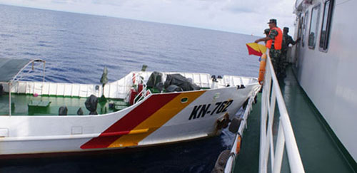 中国公布越南船只冲撞照:巨木渔网坑害中国船(资料图)