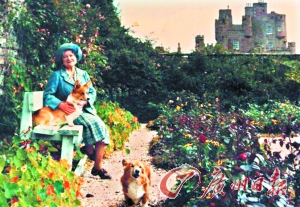 已故伊丽莎白王太后在梅伊堡与爱犬合影。