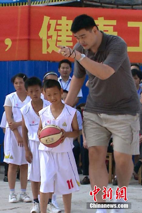 姚明四川做慈善 率小学生球队比赛被罚俯卧撑