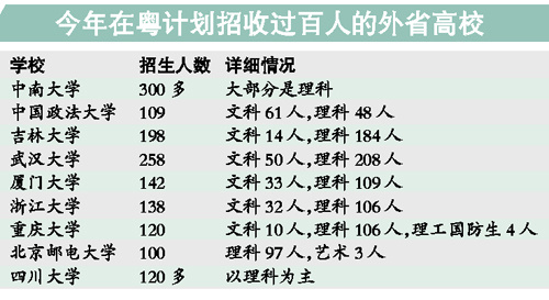 今年在粤招收学生过百名的“外省招生大户”数量增多