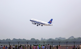 6月24日,当地群众在衡阳南岳机场观看飞机试飞。当日上午,湖南衡阳南岳机场迎来首架民航客机,一架由中国南方航空深圳分公司试飞小组驾驶的空客A320型客机平稳降落。目前,衡阳南岳机场只需通过行业验收,获得机场使用许可证,即可正式通航。衡阳南岳机场初步计划开通6条航线,分别为北京、上海、大连、重庆或成都、海口、西安或昆明。衡阳南岳机场将填补湘中南民用机场空白。