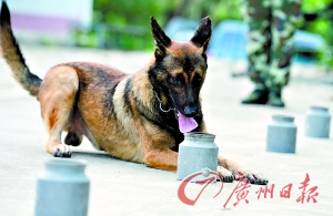 昨日,广东边防总队机动支队警犬分队开展缉毒练兵周活动。