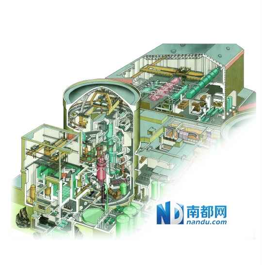 157组燃料组件被放在压力容器内。压力容器和蒸汽发生器、稳压器等设备一起被置于安全壳中。