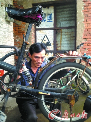 原标题:他是容桂好人 “跛仔”嘅单车修理档