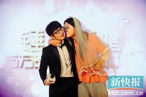 新快报讯 驻京记者梁晓雯报道 王大锤的新婚大礼暨《万万没想到》第二季上线发布会前日在京举办,现场王大锤半推半就“娶”了剧中反串女神的特效师孔连顺。