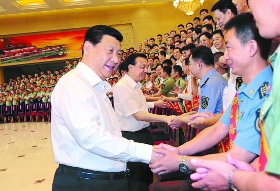 6月27日,党和国家领导人习近平、李克强、张高丽等在北京接见第五次全国边海防工作会议全体与会代表。新华社记者 李刚摄